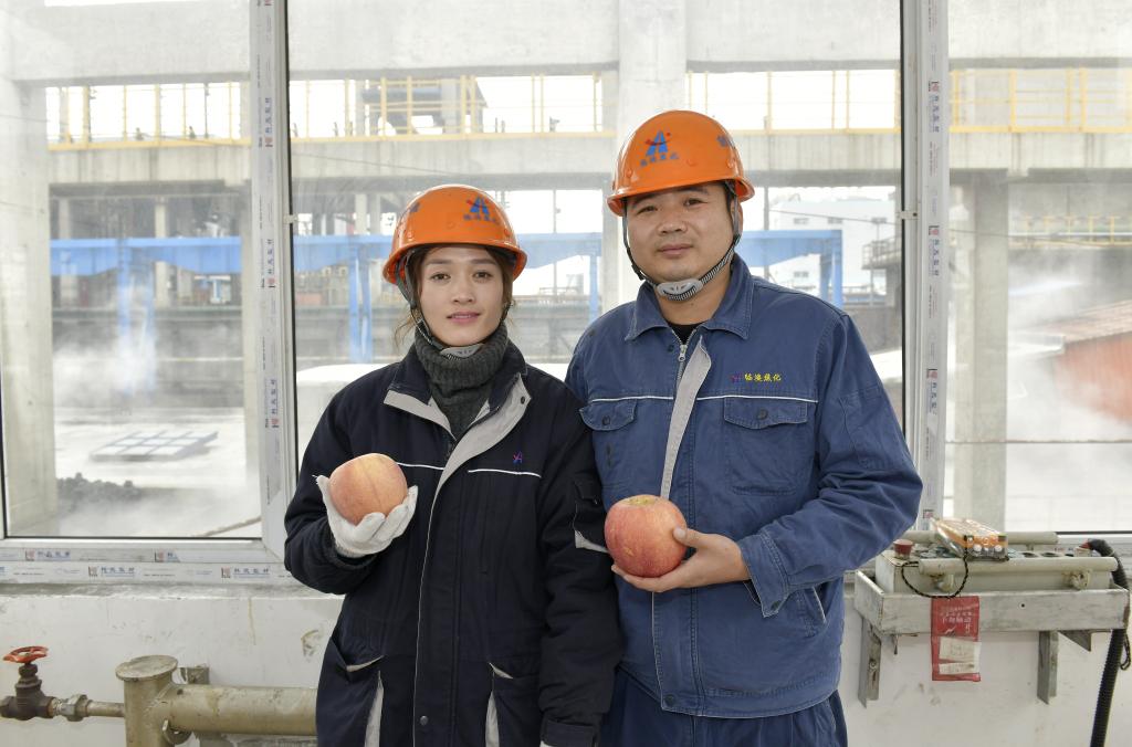 一声熟悉的“老婆,我来了。”打断了罗楠的手里工作,应声望去,丈夫王玉峰的突然出现,还是让她有点惊喜。当日休班的王玉峰是炼焦一车间作业长,在家安排好孩子后,决定来到单位陪老婆一起坚守岗位过年。