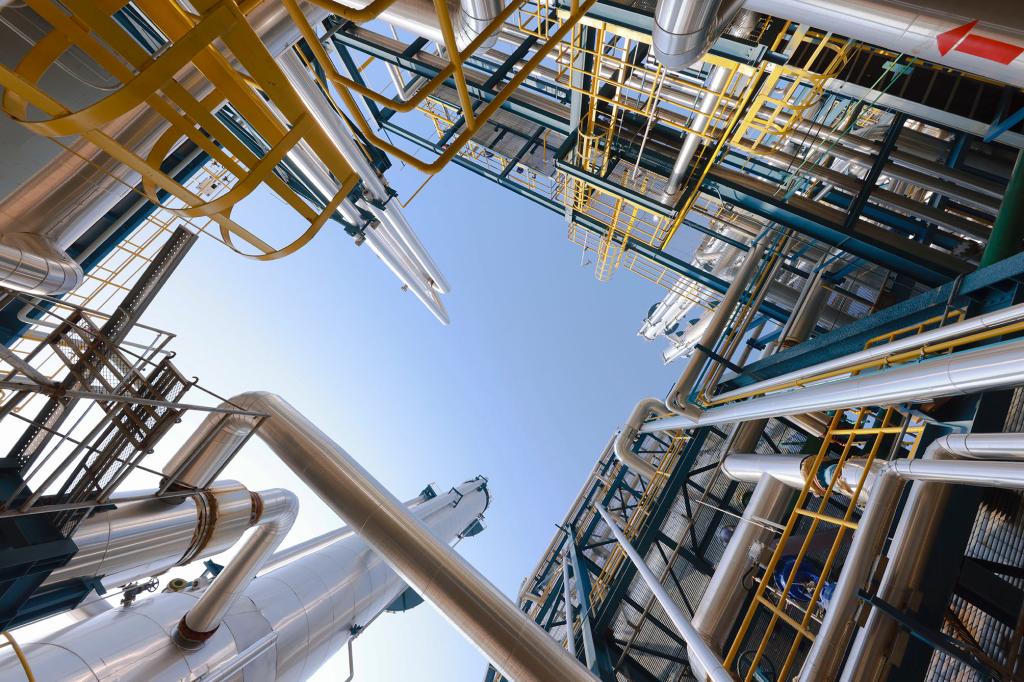 技术工人正在对合成气压缩机进行安装调试