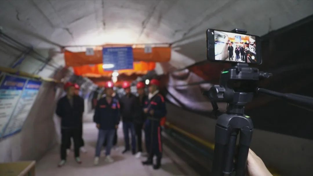 在安徽淮北煤电技师学院模拟矿井,高级技师纪海矿正在向学员们现场传授瓦斯检查操作技术,并通过网络直播,把实操经验分享给各个煤矿的职工。