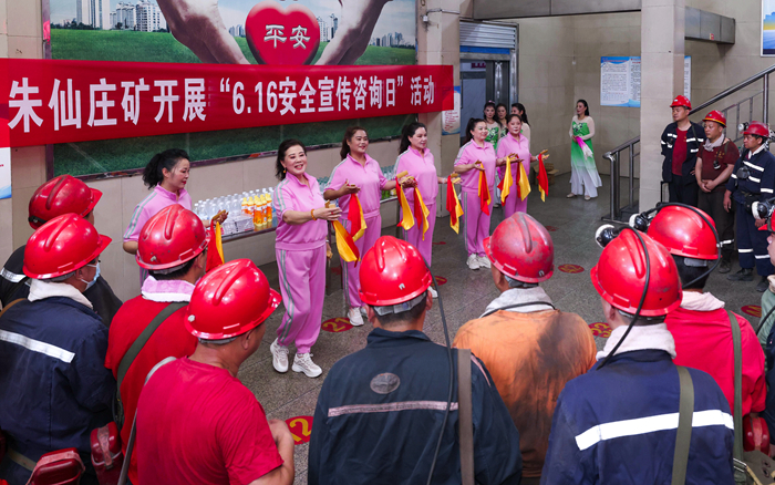 朱仙庄矿“五老”宣传员表演安全快板,让广大职工在寓教于乐中汲取安全知识(张丽霞 摄)