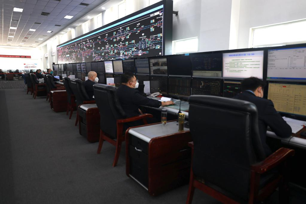 湖东站集控楼内工作人员正在忙碌。(中国铁路太原局集团有限公司供图)